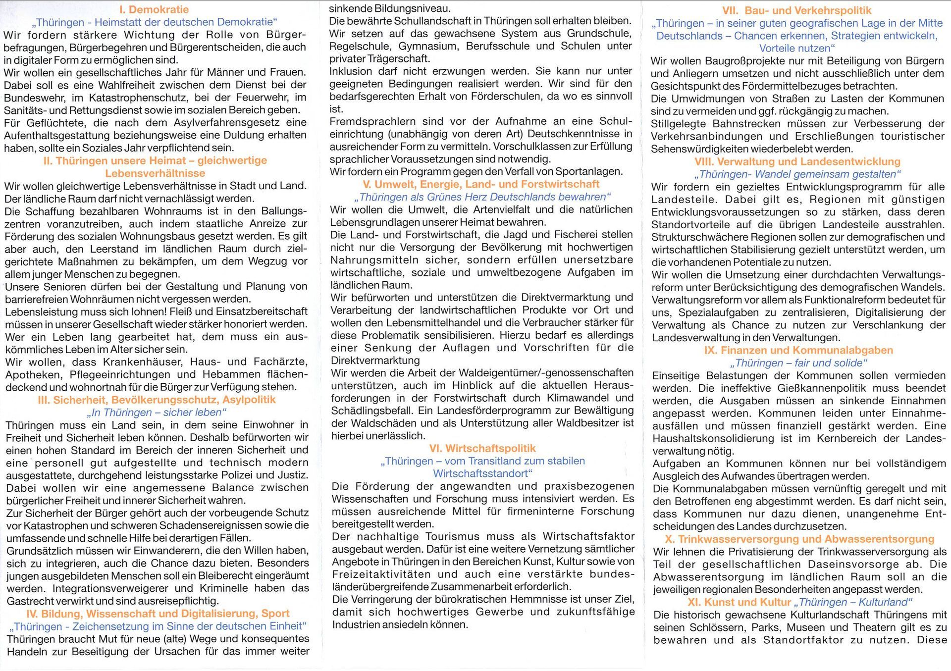 Wahlprogramm der Partei FREIE WÄHLER Thüringen zu den Landtagswahlen